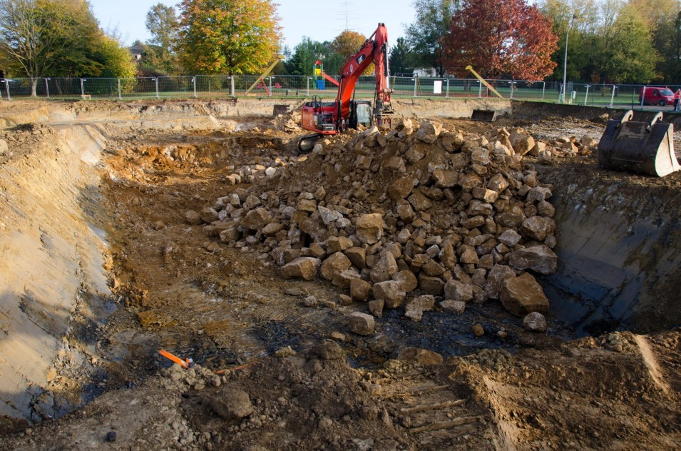 L’entreprise Costantini S.A. qui a été chargée des travaux de gros oeuvres, a déjà effectué le décapage de la terre arable.