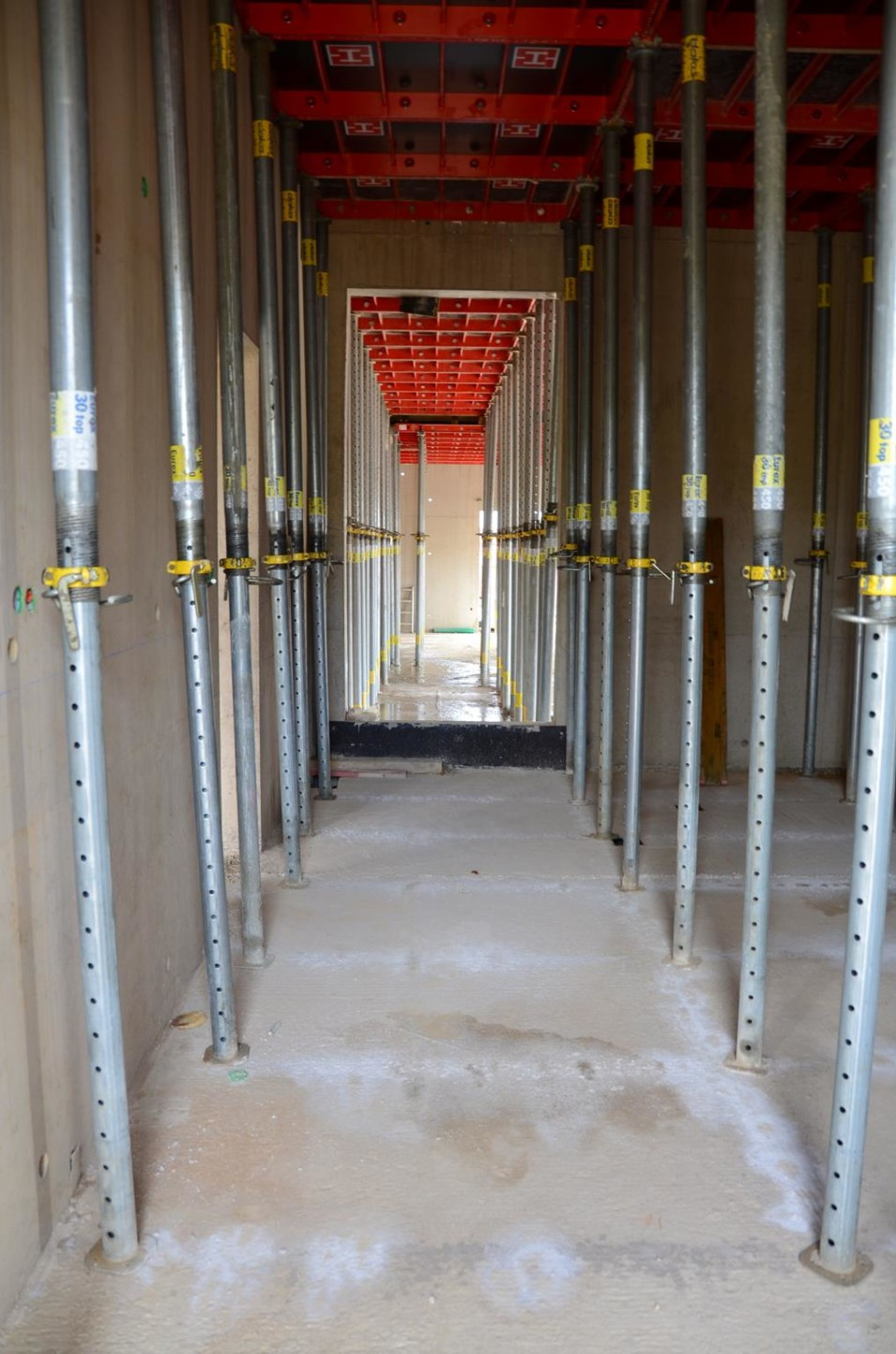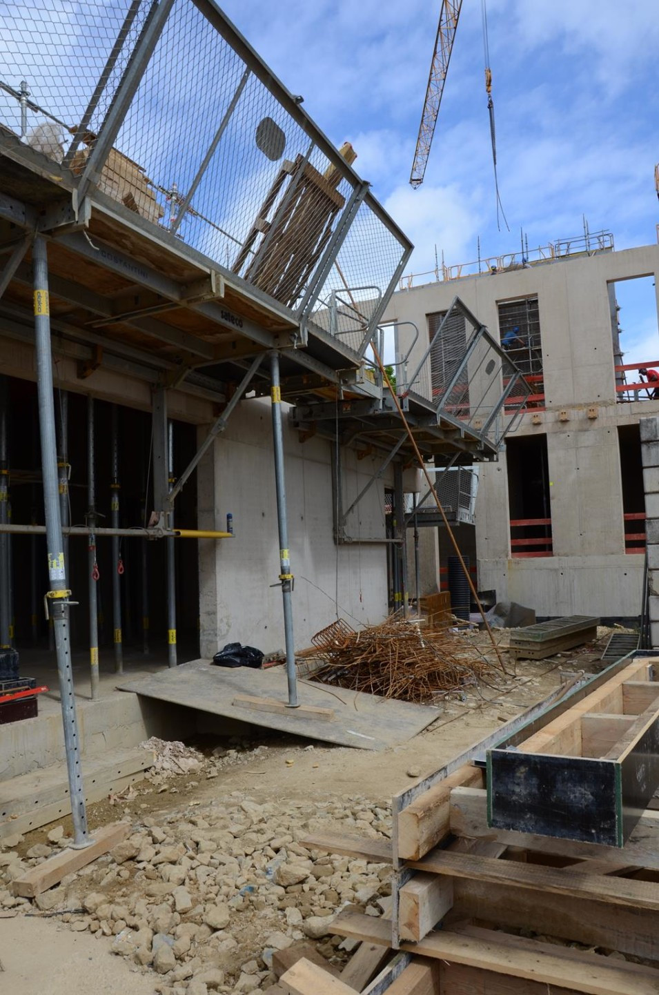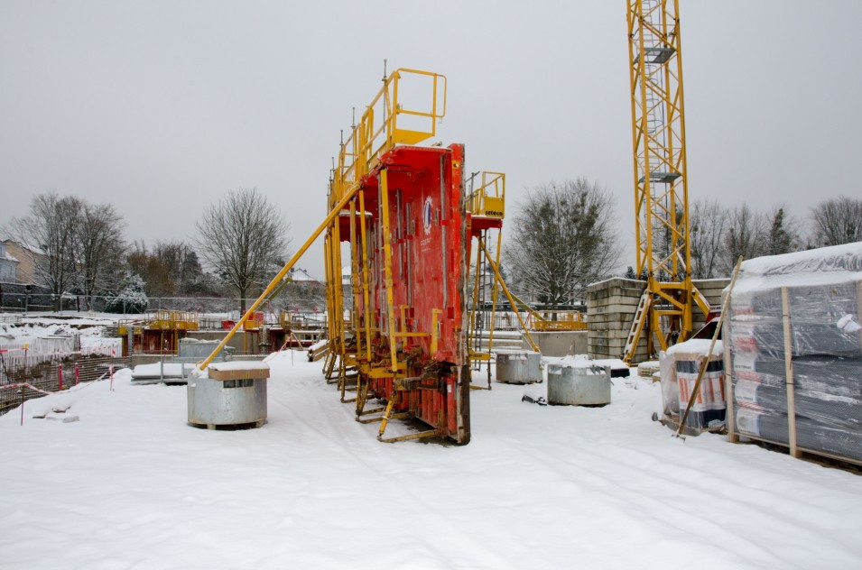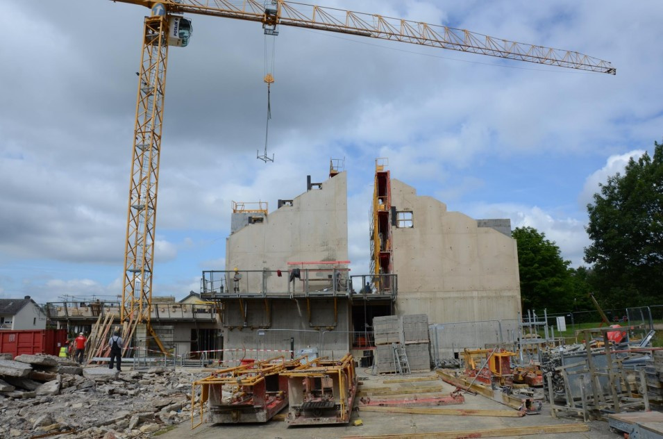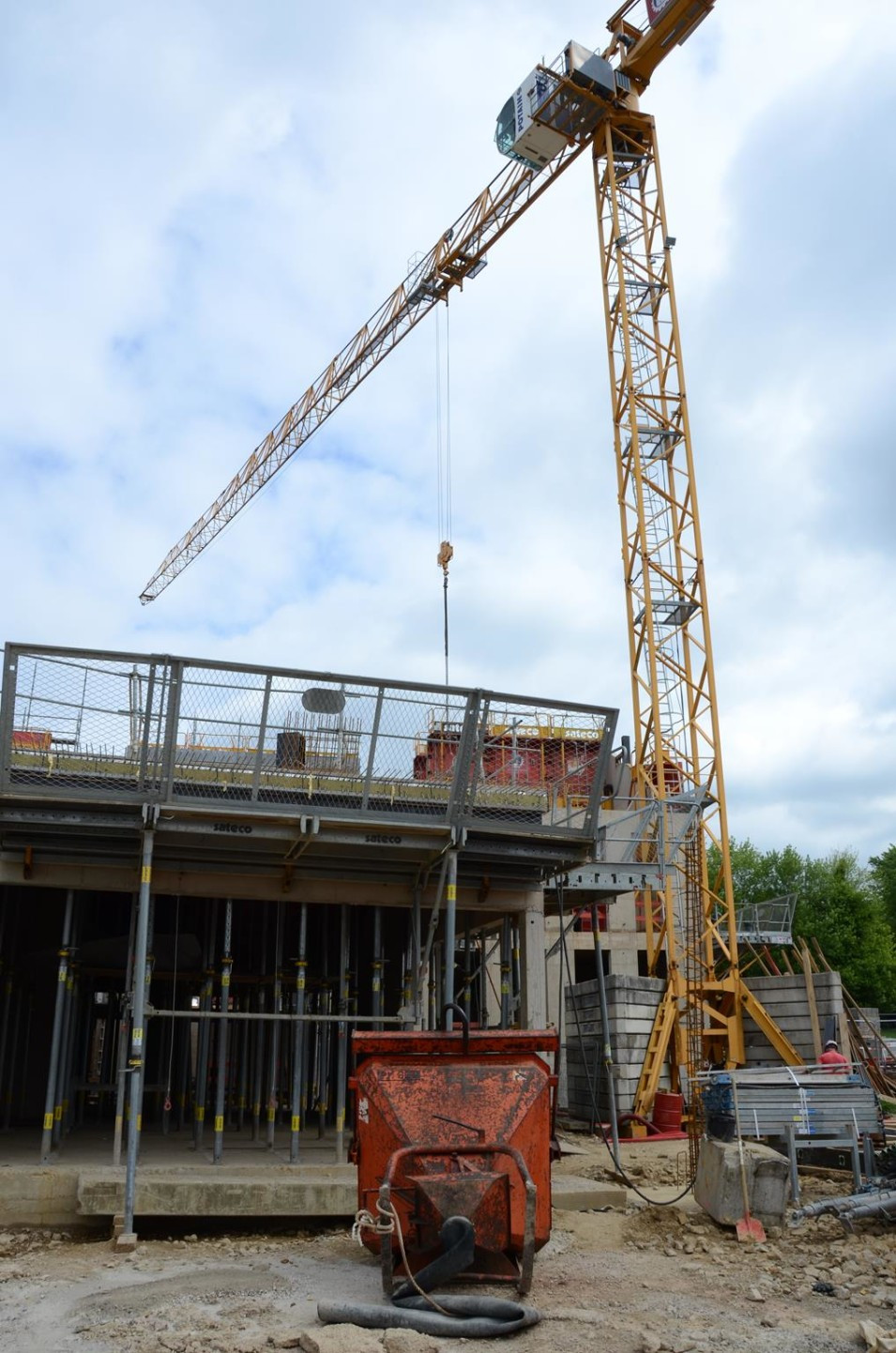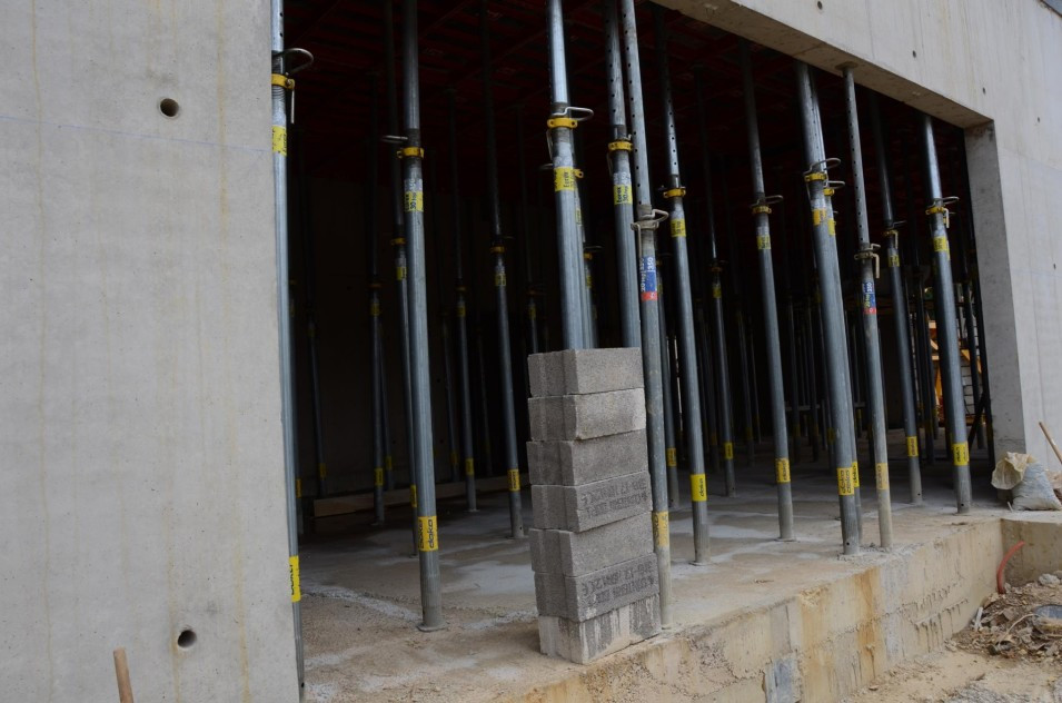 Les travaux de terrassement ainsi que le radier étant déjà finalisés, actuellement on finalise le coulage des voiles au sous-sol ainsi que le coffrage pour la dalle sur le sous-sol. Parallèlement, il est prévu de bientôt entamer les travaux de démolition de l’ancien bâtiment de l’école préscolaire. Malheureusement, les intempéries du début de février 2018 ont freiné l’avancement des travaux de gros-œuvres.